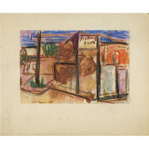 <B>JOSEPHINE MAHAFFEY (American, 1903-1982)</B></I><BR>Untitled, city scene<BR>Watercolor and oil pastel on paper, mounted on mat board<BR>9-1/4in. x 11-1/4in.<BR><BR><BR><BR><b>Shipping:</b> Flat Material, Small (<a target="_blank" href="http://www.heritageauctions.com/common/shipping.php">view shipping information</a>)