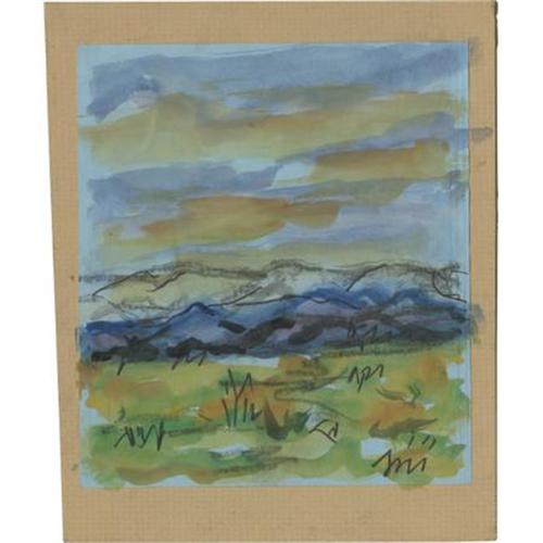 <B>JOSEPHINE MAHAFFEY (American, 1903-1982)</B></I><BR>Untitled Landscape<BR>Watercolor, ink and graphite on paper, mounted on mat board<BR>8in. x 6-1/2in.<BR>Signed to lower right <I>JM</B></I><BR><BR>Josephine Mahaffey attended the College of Industrial Arts (now Texas Woman's University) and after graduation continued her studies with Sallie Blythe Mummert. Additional instruction was with Clinton King, Octavio Medellin, Kathleen Lawrence, and John Erickson. For many years she ran her own art gallery in Azle and taught watercolor classes in Fort Worth. Josephine was a fixture at Fair Park and the State Fair of Texas selling her art. In 1968, she was honored with the naming of "Josephine Mahaffey Day" at the State Fair of Texas.<BR><BR> <B>Condition Report:</B> Normal signs of wear as appropriate with age.<BR><BR><b>Shipping:</b> Requires 3rd Party Shipping (<a target="_blank" href="http://www.heritageauctions.com/common/shipping.php">view shipping information</a>)