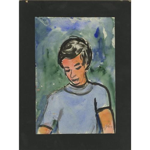 <B>JOSEPHINE MAHAFFEY (American, 1903-1982)</B></I><BR>Untitled, portrait<BR>Watercolor on paper, mounted on mat board<BR>Signed to lower right <I>JM</B></I><BR>11-1/4in. x 8.5in.<BR><BR><BR><BR><b>Shipping:</b> Flat Material, Small (<a target="_blank" href="http://www.heritageauctions.com/common/shipping.php">view shipping information</a>)