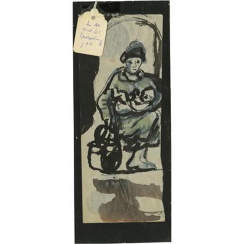 <B>JOSEPHINE MAHAFFEY (American, 1903-1982)</B></I><BR>Untitled Mother and Child<BR>Watercolor on paper, mounted on mat board<BR>9in. x 3-3/4in.<BR><BR>Josephine Mahaffey attended the College of Industrial Arts (now Texas Woman's University) and after graduation continued her studies with Sallie Blythe Mummert. Additional instruction was with Clinton King, Octavio Medellin, Kathleen Lawrence, and John Erickson. For many years she ran her own art gallery in Azle and taught watercolor classes in Fort Worth. Josephine was a fixture at Fair Park and the State Fair of Texas selling her art. In 1968, she was honored with the naming of 'Josephine Mahaffey Day" at the State Fair of Texas.<BR><BR> <B>Condition Report:</B> Normal signs of wear as appropriate with age.<BR><BR><b>Shipping:</b> Flat Material, Small (<a target="_blank" href="http://www.heritageauctions.com/common/shipping.php">view shipping information</a>)