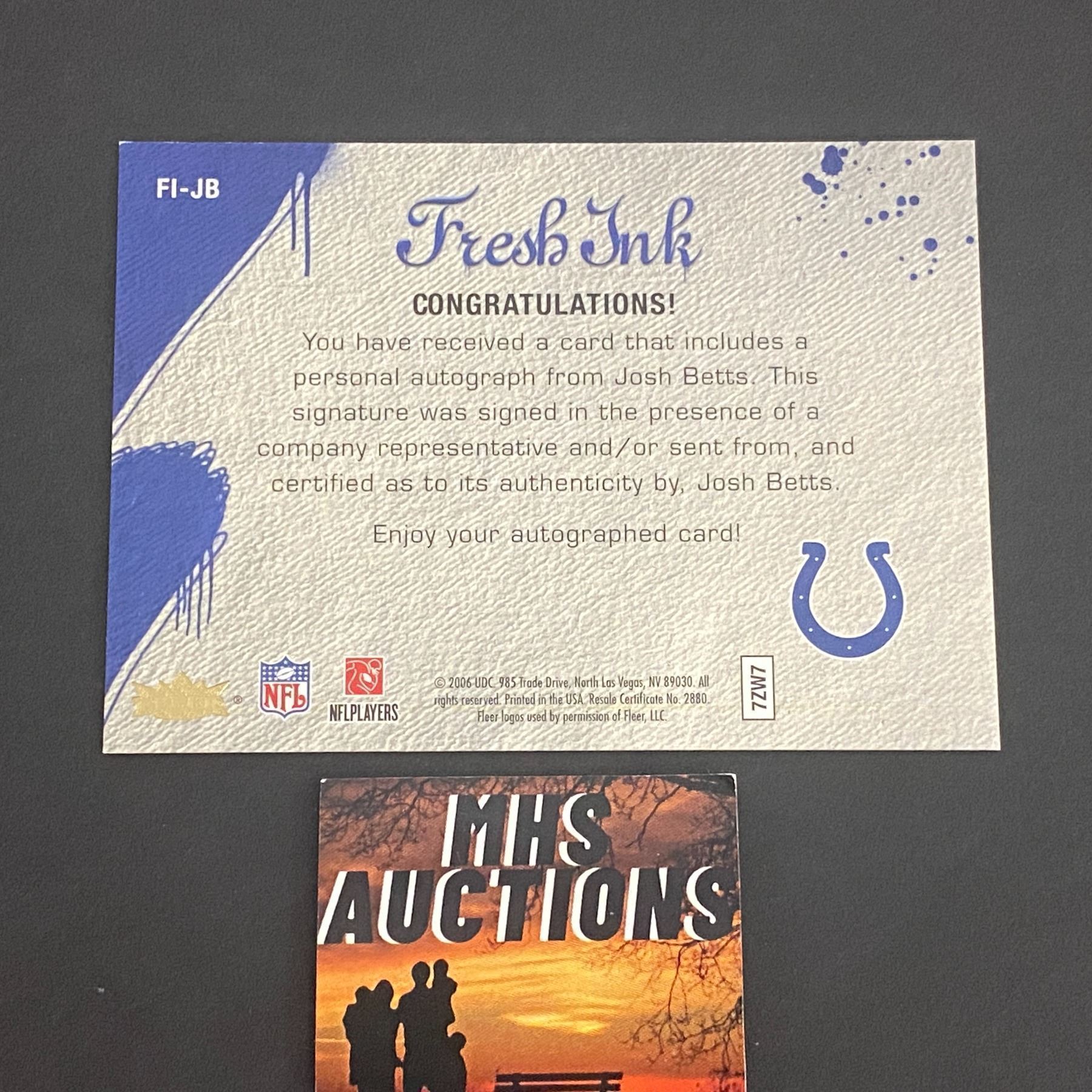 JOSH BETTS INDIANAPOLIS COLTS AUTOGRAPH CARD