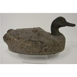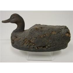 Josiah Travers 1950 black duck decoy, Vienna, Maryland. Cork body. Early brass tack eyes.
