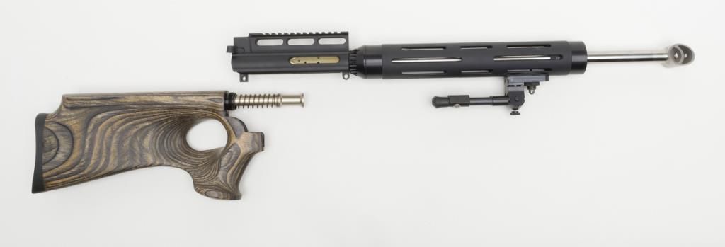 JP Cryogenic AR 15 Upper with 22” stainless steel compensated barrel. The upper features a free floating hand guard and integral bipod. Included in the lot is a laminated hardwood, thumbhole stock with oversize target grip. (Exempt) Est.:$400-$800.