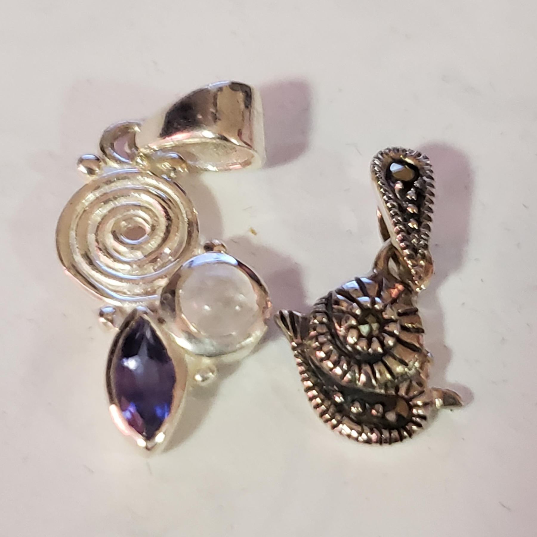 JP1027-341 SILVER- 2 MARCASITE MOONSTONE PENDANTS