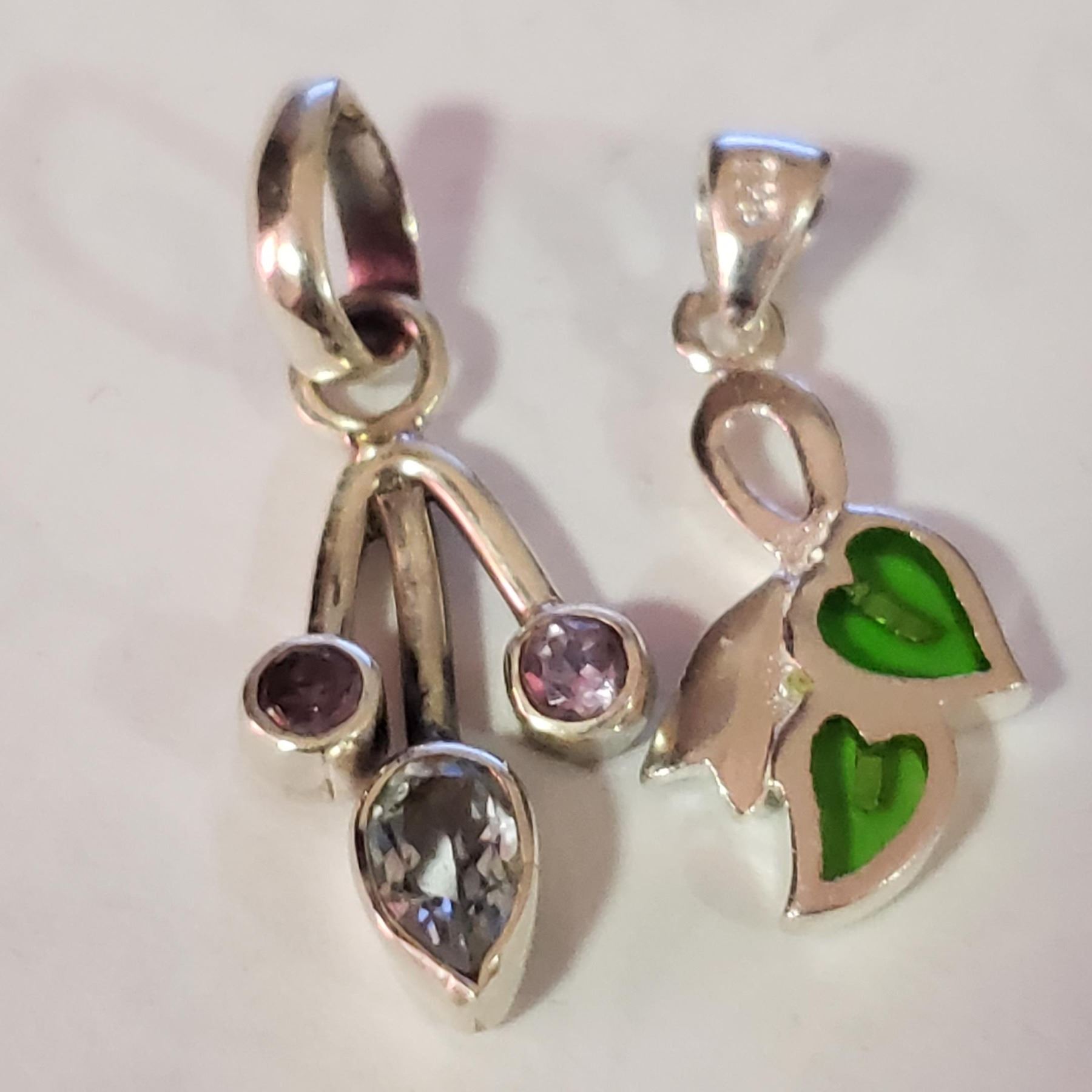 JP1027-346 SILVER LOT OF 2 GEMSTONE PENDANT