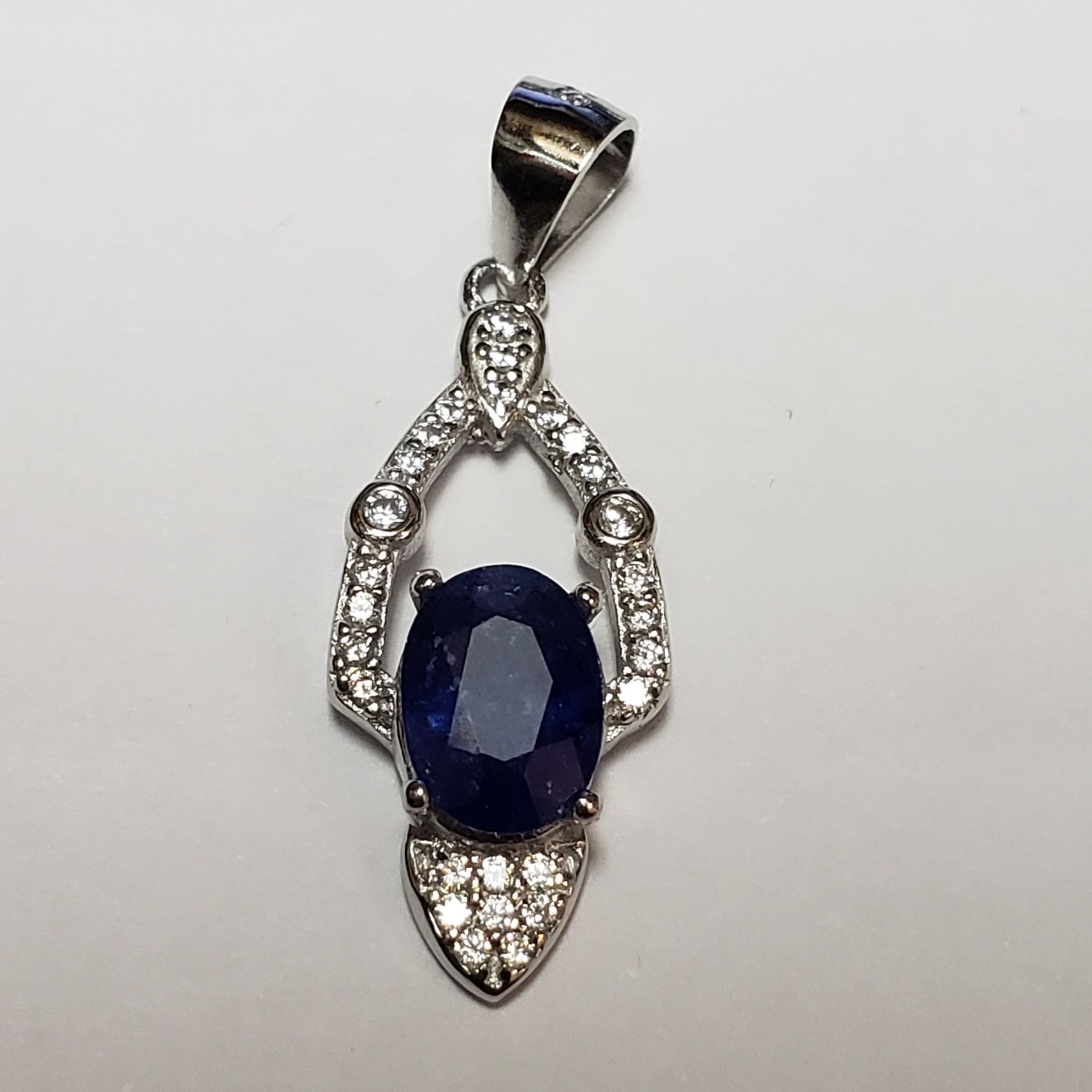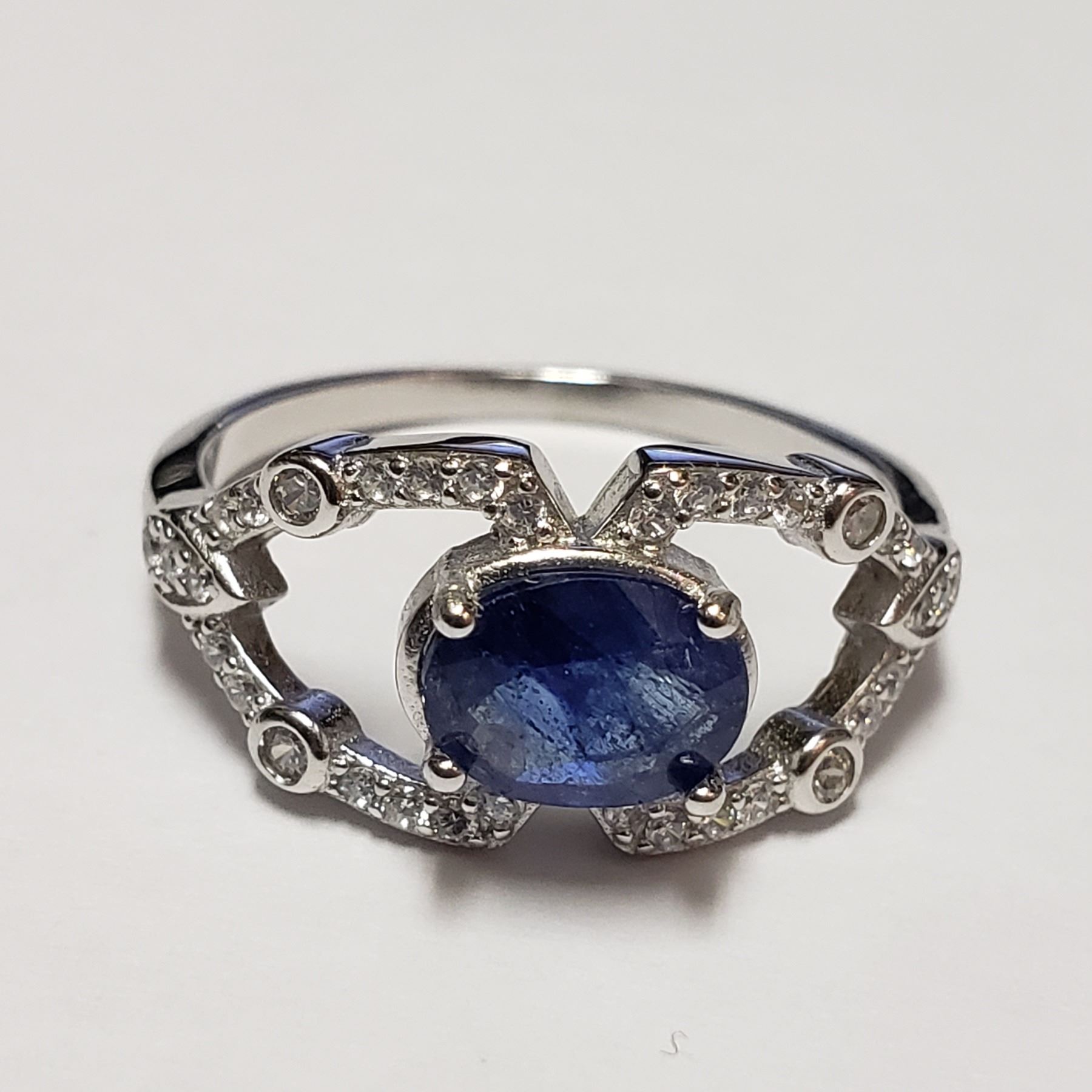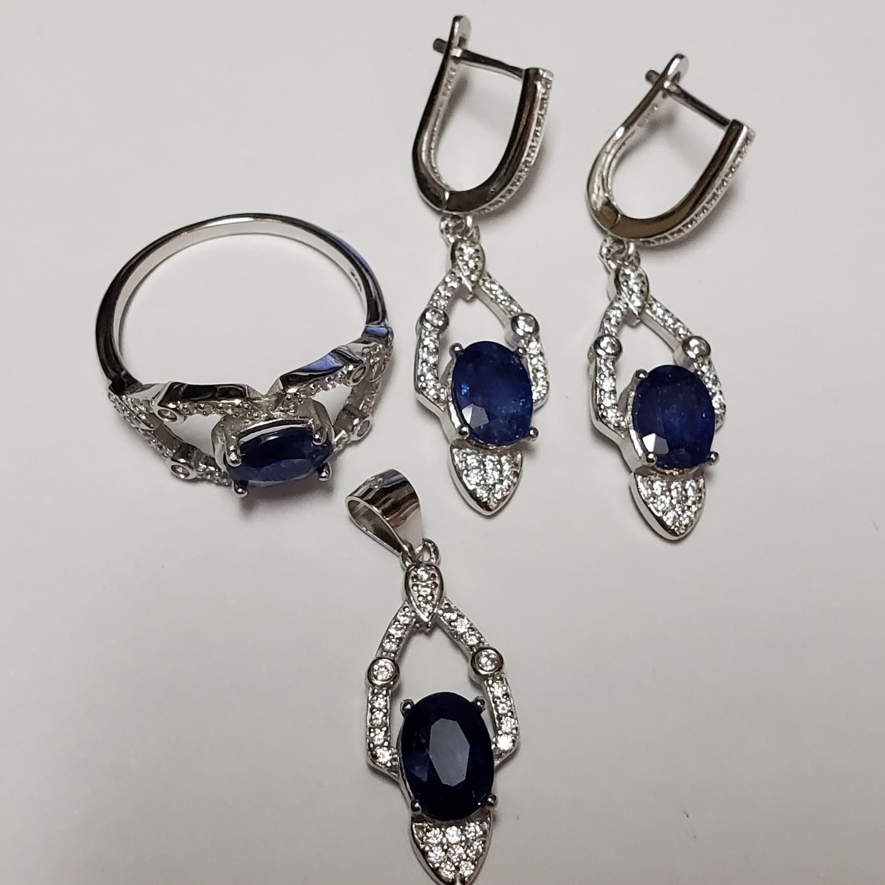 SILVER RHODIUM PLATTED SAPPHIRE (6.4CT) EARRINGS, PENDANT & RING SET, WEIGHT 9.37 GRAMS. SUGGESTED RETAIL VALUE $