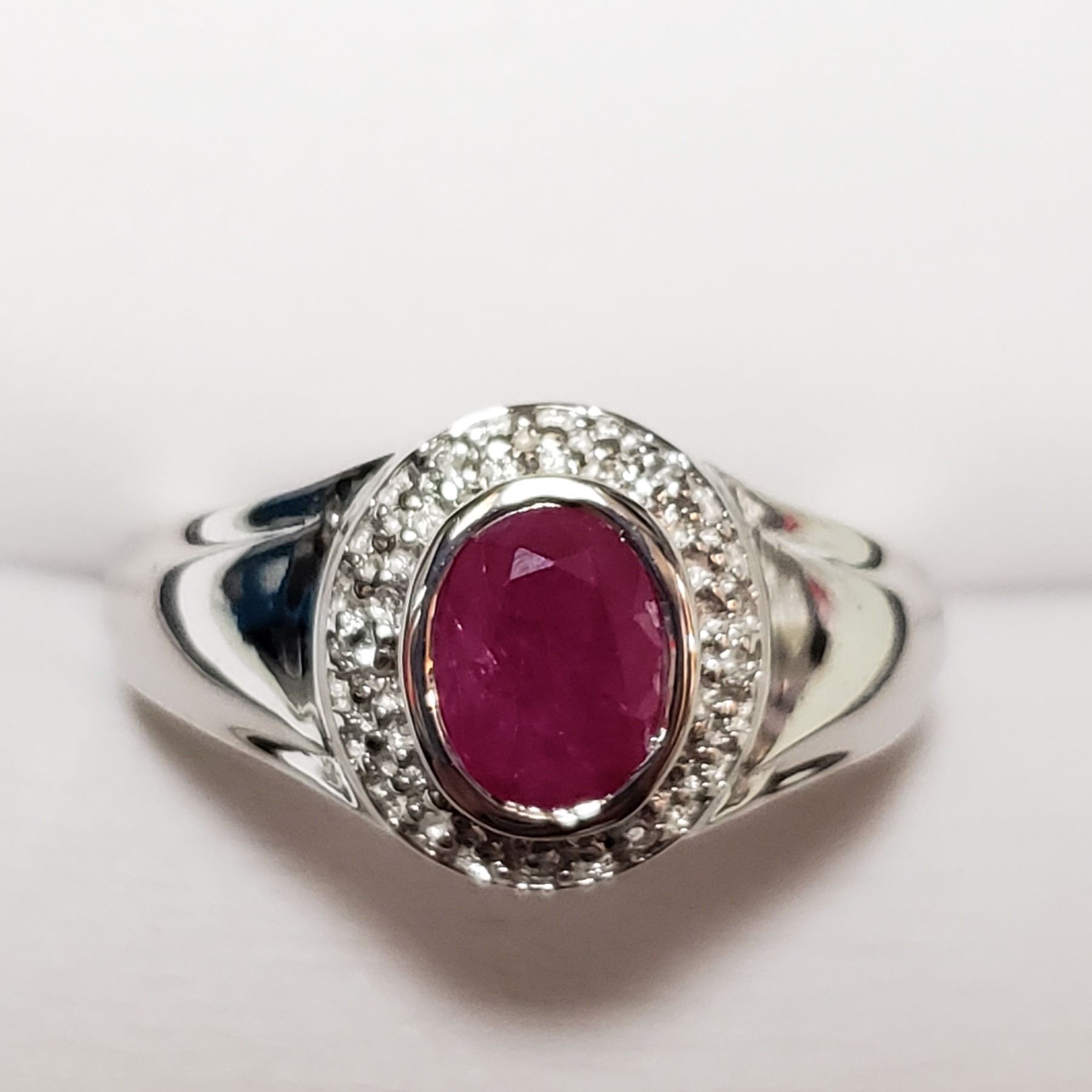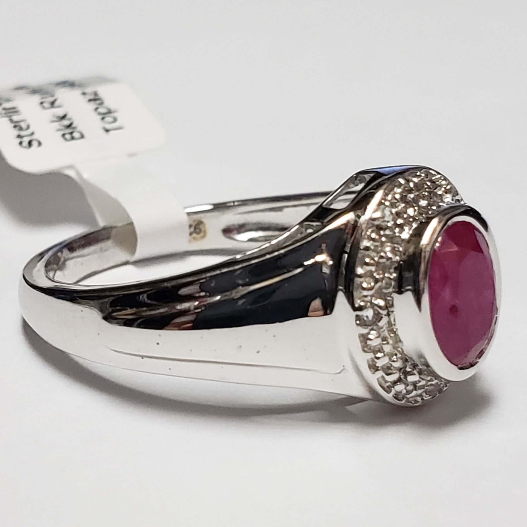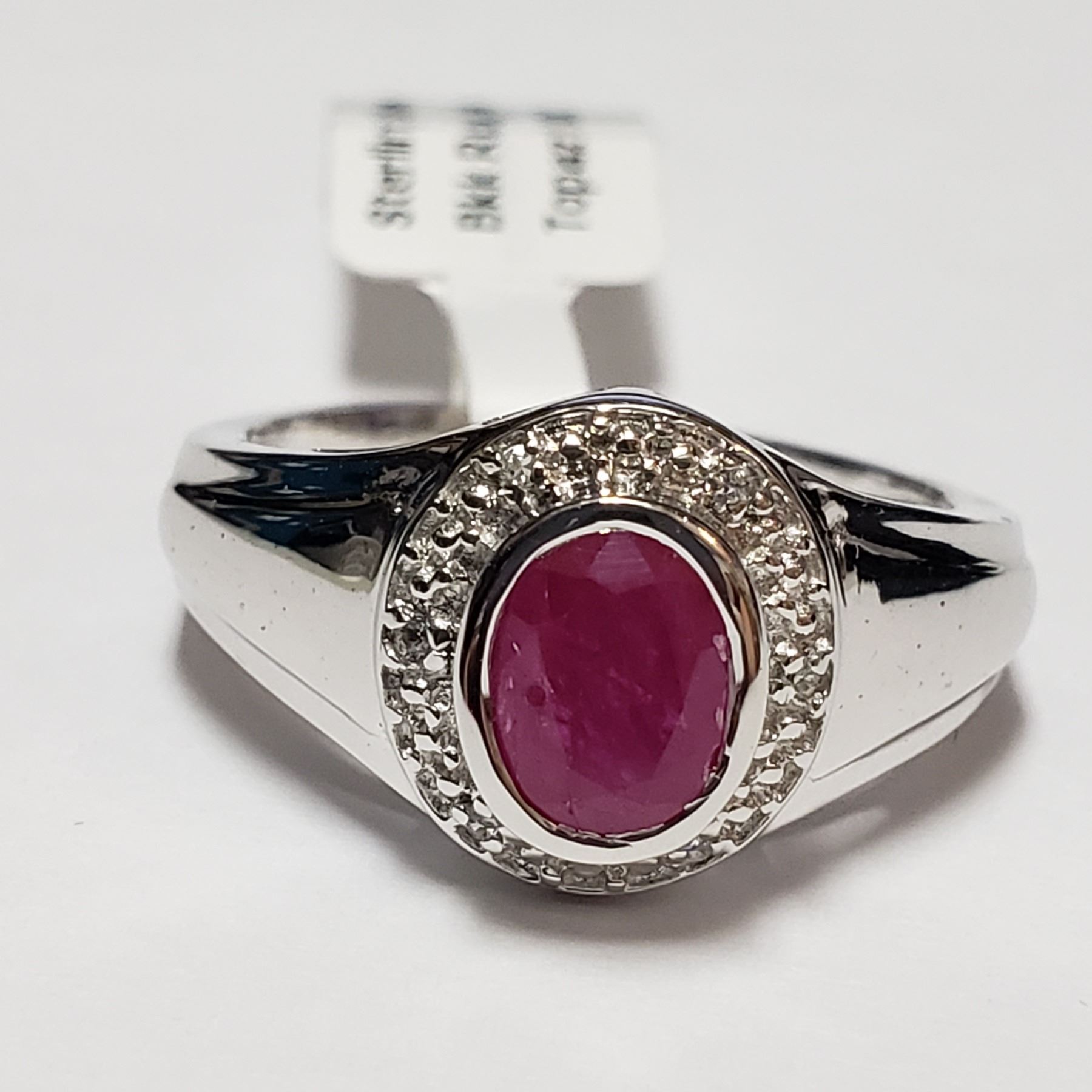 SILVER WHITE TOPAZ RUBY (0.9CT) RING, WEIGHT 3.9 GRAMS. SUGGESTED RETAIL VALUE $150