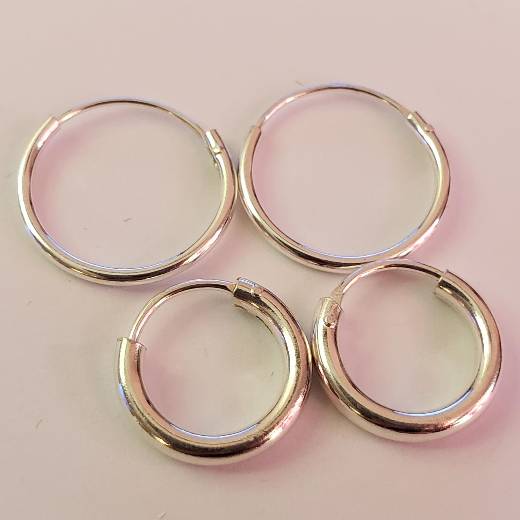 JP974-200 SILVER PACK OF 2 PAIRS HOOP EARRINGS