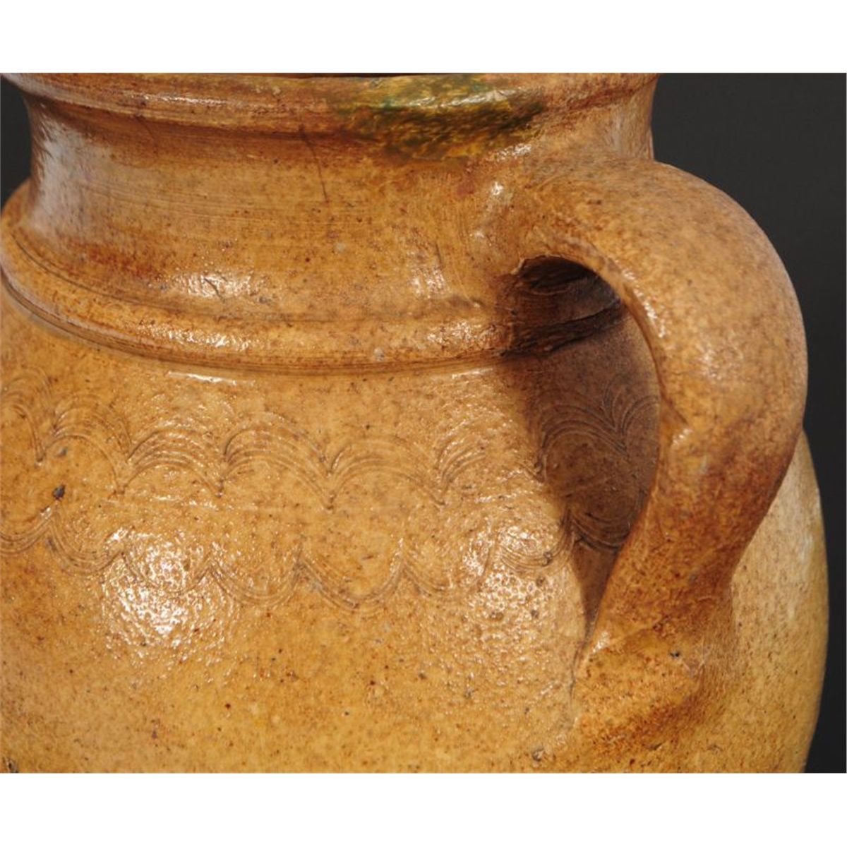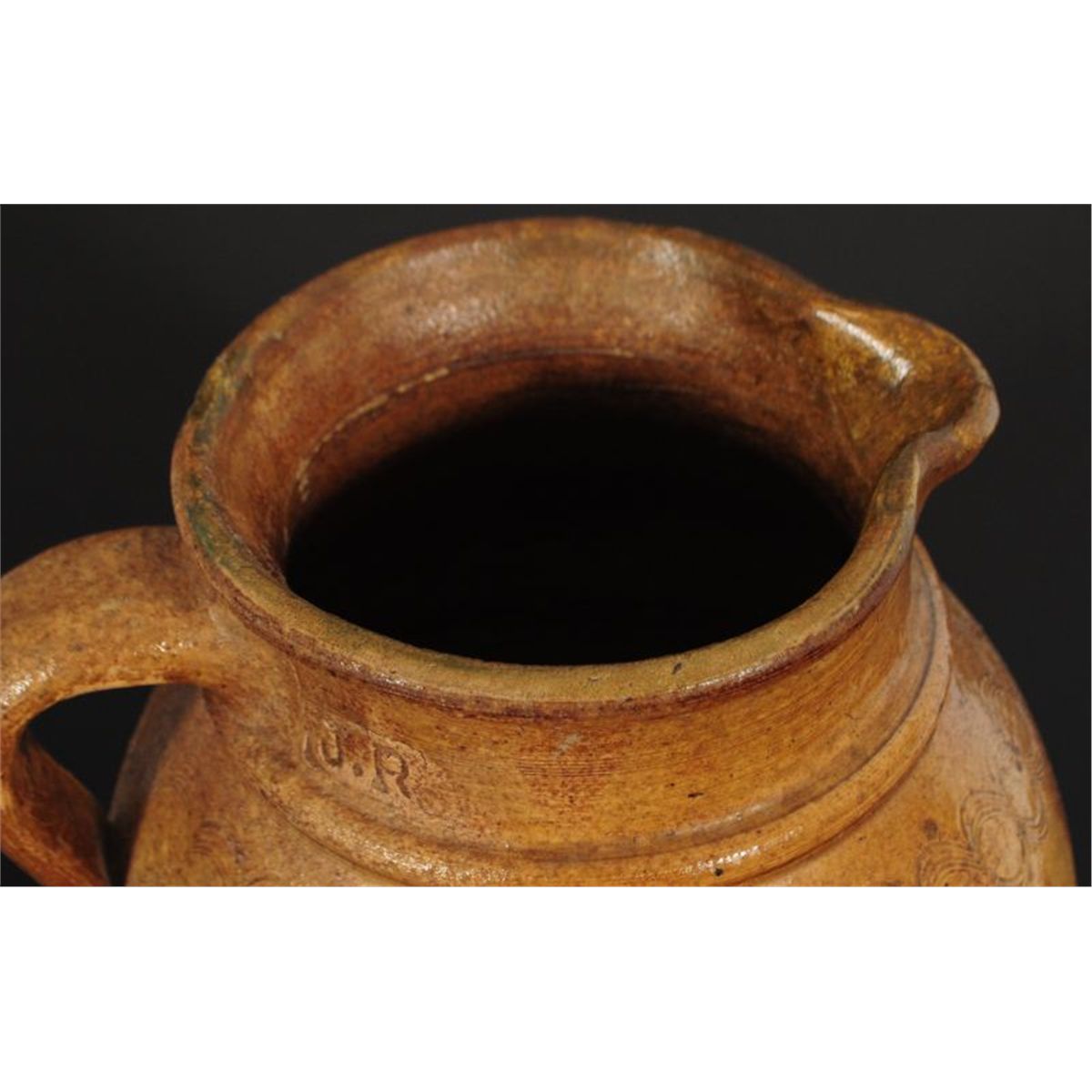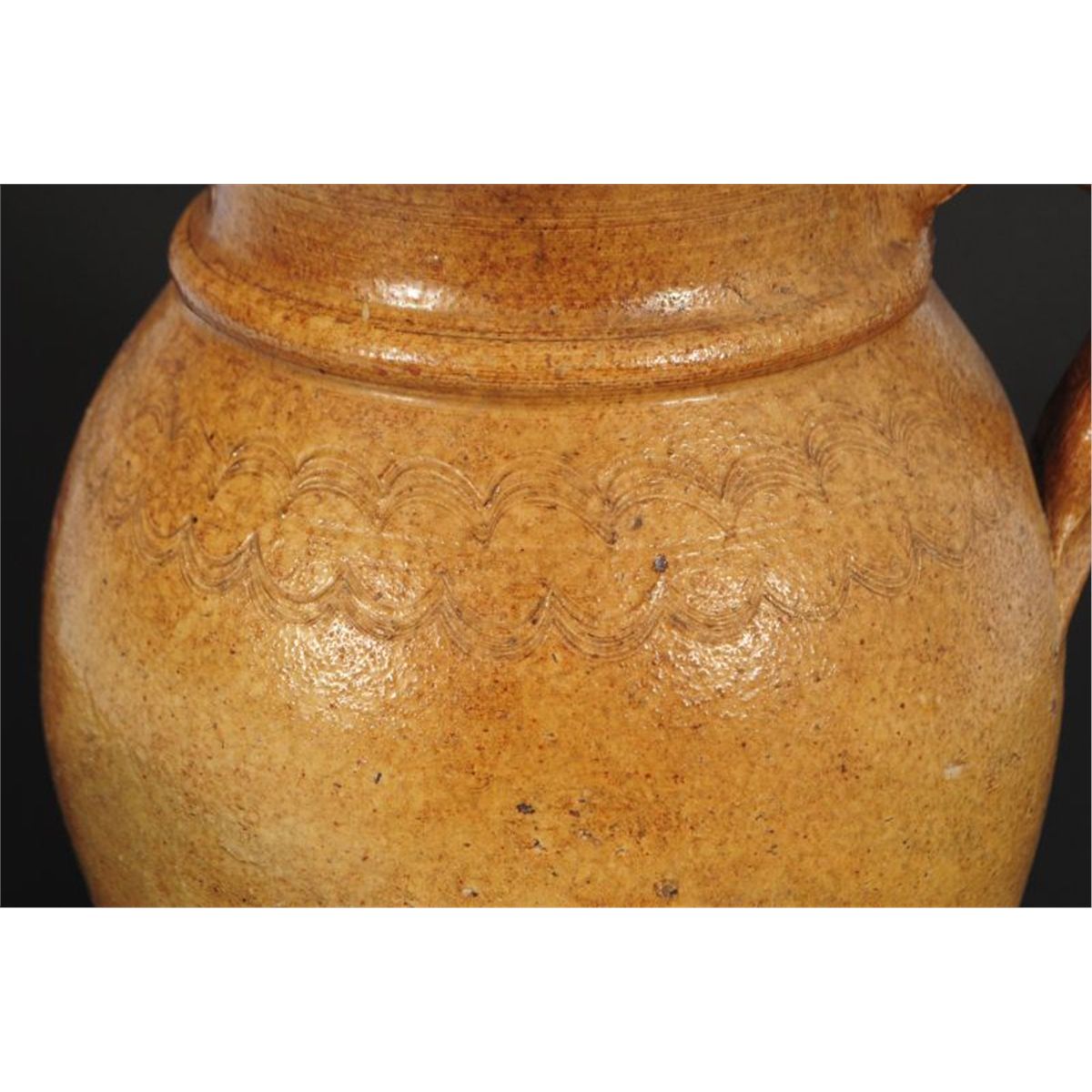 Originally part of the Georgeanna Greer Collection. Combed decorations. Rusk County, Texas. Signed JR. Has old repair to spout. Purchased at Harmer Rooke during the Georgeanna Greer Collection Auction in 1992. Illustrated in Greer's American Stoneware, page 156.