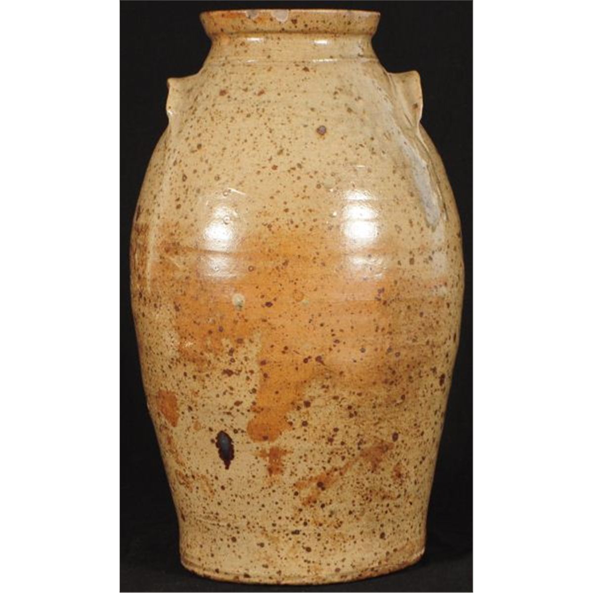 J.S. Hogue, Titus County, Texas. Circa 1870. Nice example of Hogue's work. Purchased in Pittsburg, Camp County, Texas in the early 1990s. Salt glaze. 18-3/4".