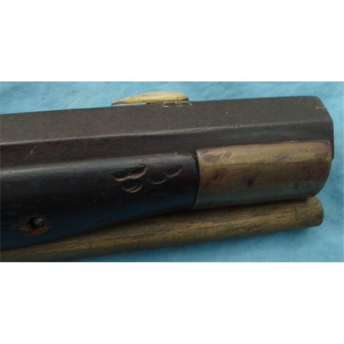 #NSN; Antique. Approx. 39 1/2" Oct. bbl. & approx 40 cal. Marked "J.S. Johnston". Lock is decorated but appears unmarked. Dbl. set triggers, full length maple stock showing some period repairs at wrist. Brass furniture w/some silver inlay. Overall length approx 53". Very small size stock as possibly a boys or ladies rifle. Good overall condition for age.