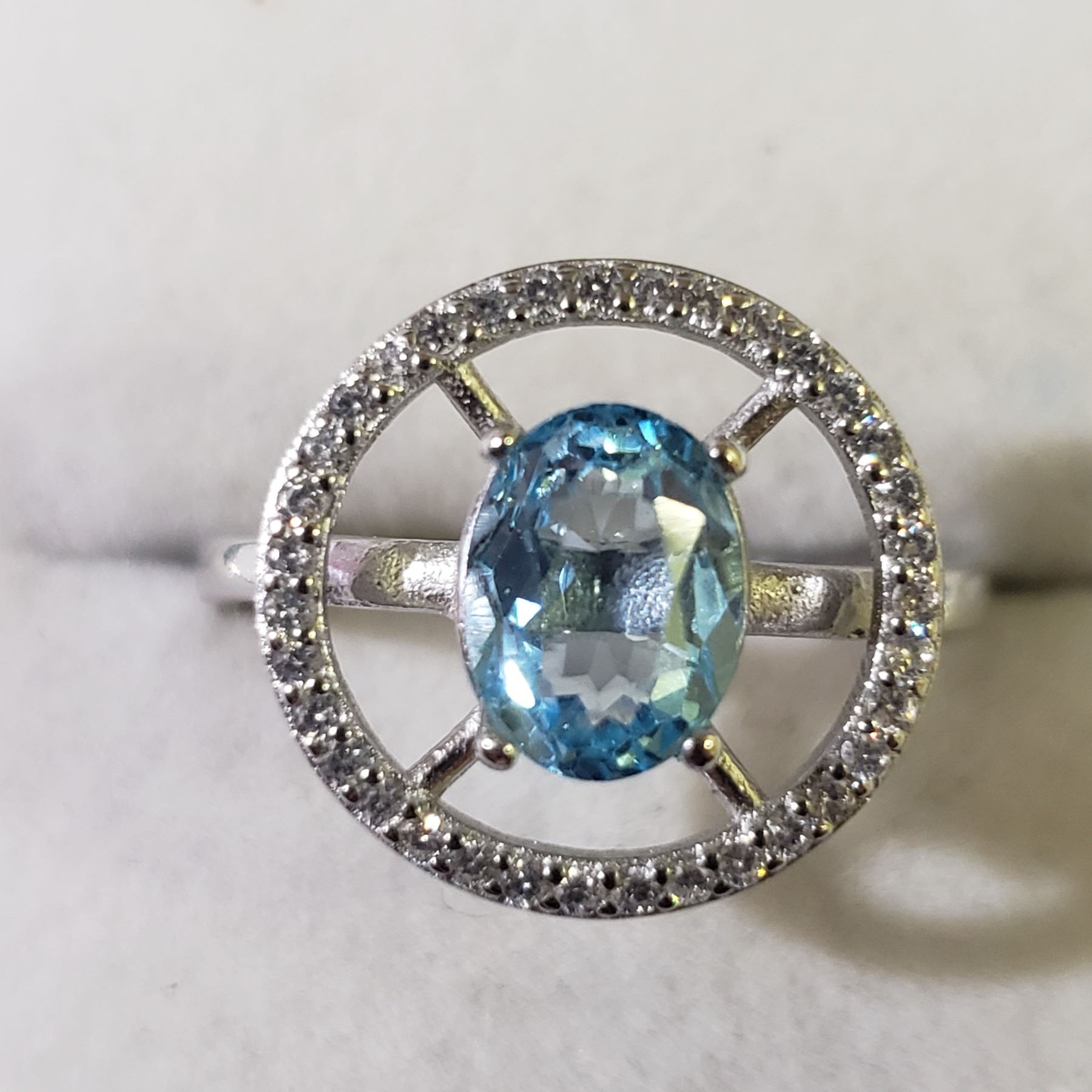 SILVER RHODIUM PLATED BLUE TOPAZ(1.6CT) RING (~SIZE 7)***ITEM(S) LOCATED IN LETHBRIDGE ALBERTA (PLEASE READ AUCTION DETAILS FOR INFORMATION ON TRANSPORTATION TO EDMONTON)