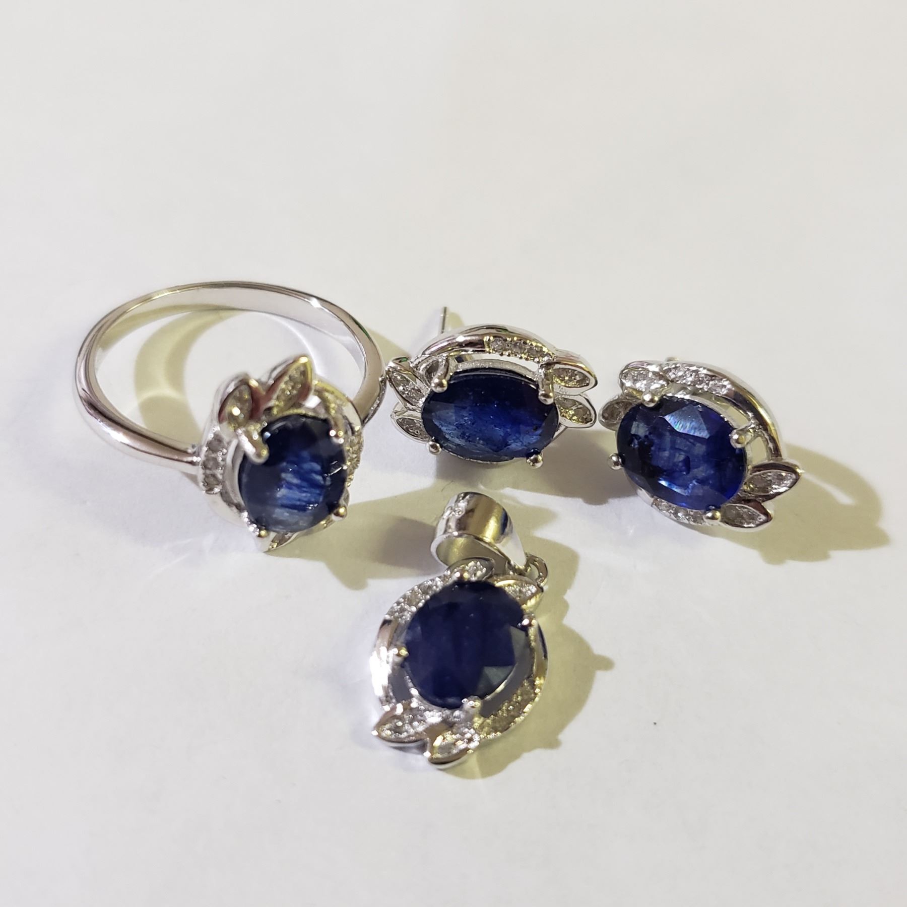 SILVER RHODIUM PLATED SAPPHIRE(10.4CT) EARRINGS, PENDANT & RING SET (~WEIGHT 7.83G),***ITEM(S) LOCATED IN LETHBRIDGE ALBERTA (PLEASE READ AUCTION DETAILS FOR INFORMATION ON TRANSPORTATION TO EDMONTON)