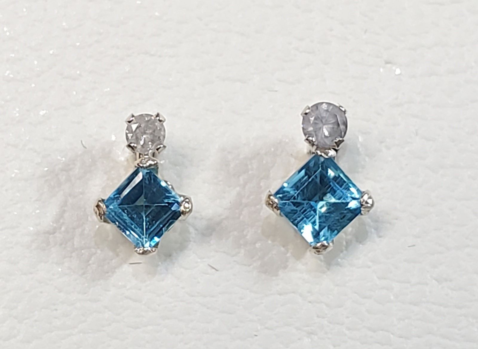 10K YELLOW GOLD BLUE TOPAZ (0.44CT) DIAMOND (0.06CT) EARRINGS, MADE IN CANADA, SUGGESTED RETAIL VALUE $500