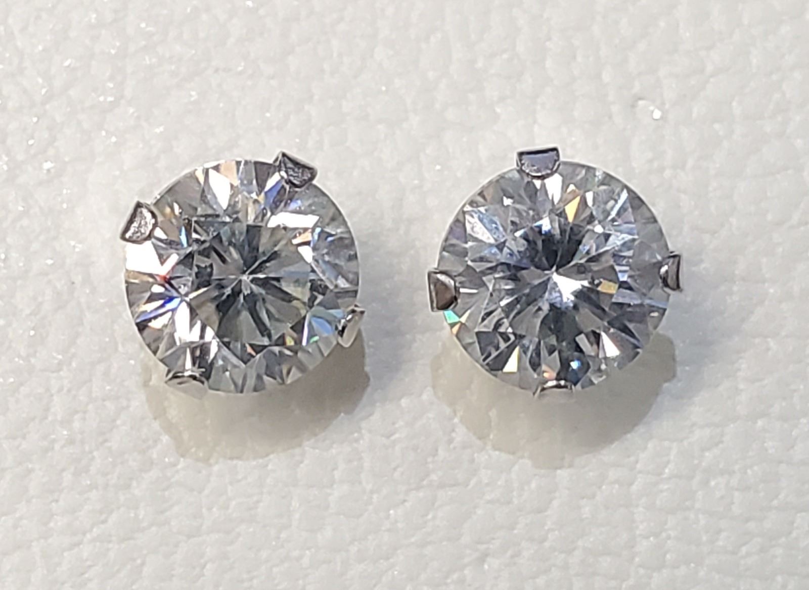 10K WHITE GOLD MOISSANITE (1.65CT) CAST STUD EARRINGS (~WEIGHT 0.76G), MADE IN CANADA