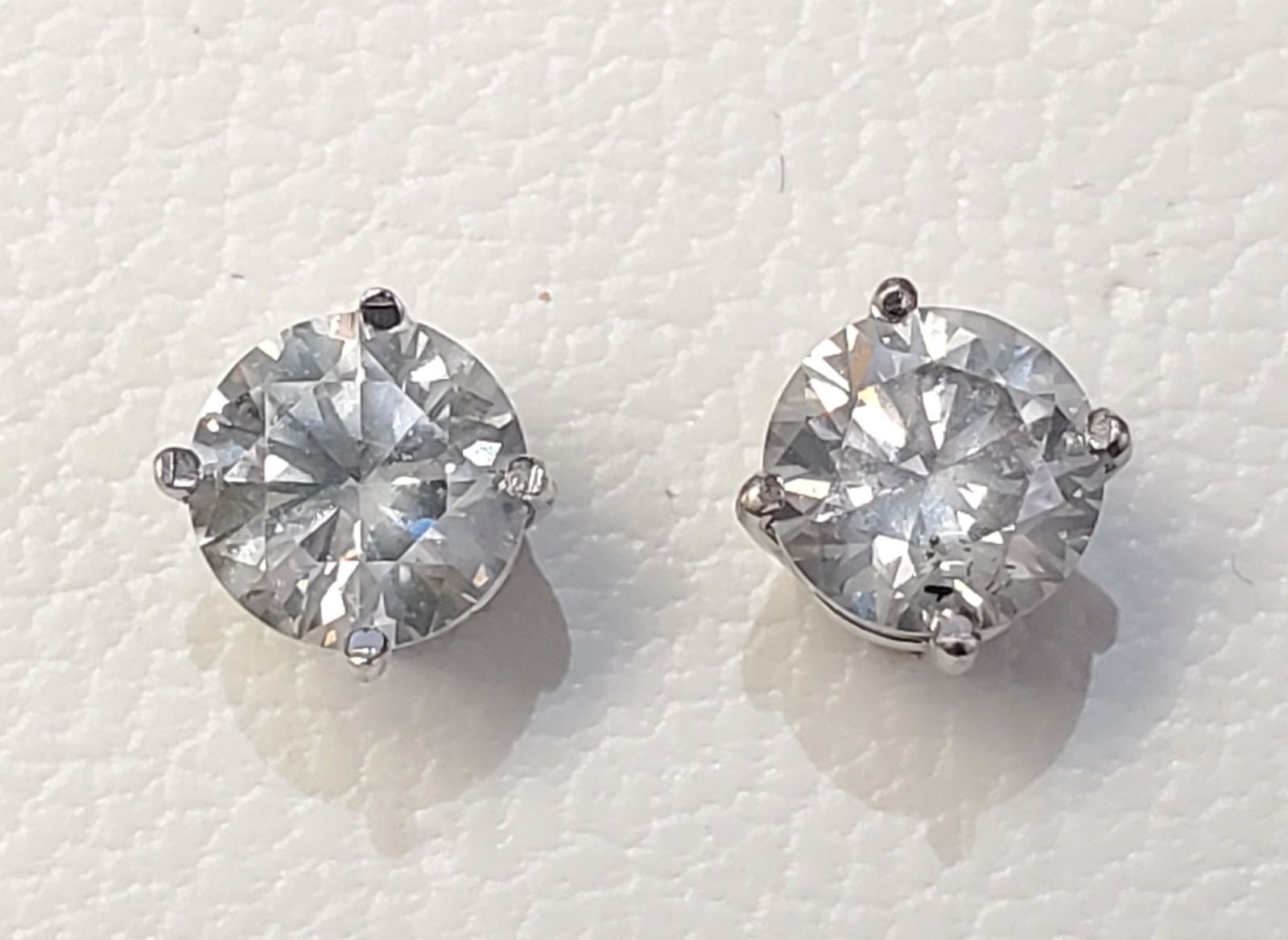 14K WHITE GOLD DIAMONDS (1.08CT, SI2-I1, H-I) STUD EARRINGS (~WEIGHT 0.85G), MADE IN CANADA, APPRAISED RETAIL $2500