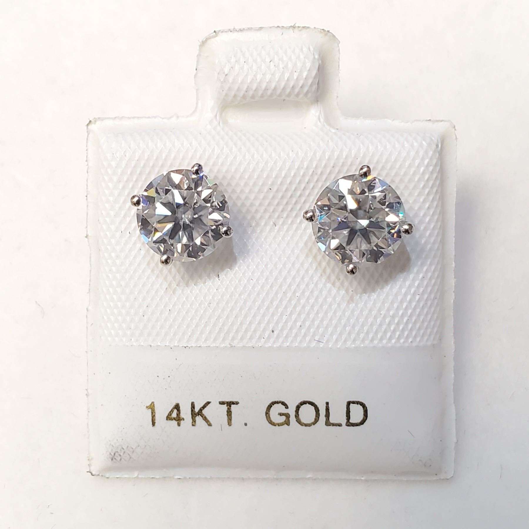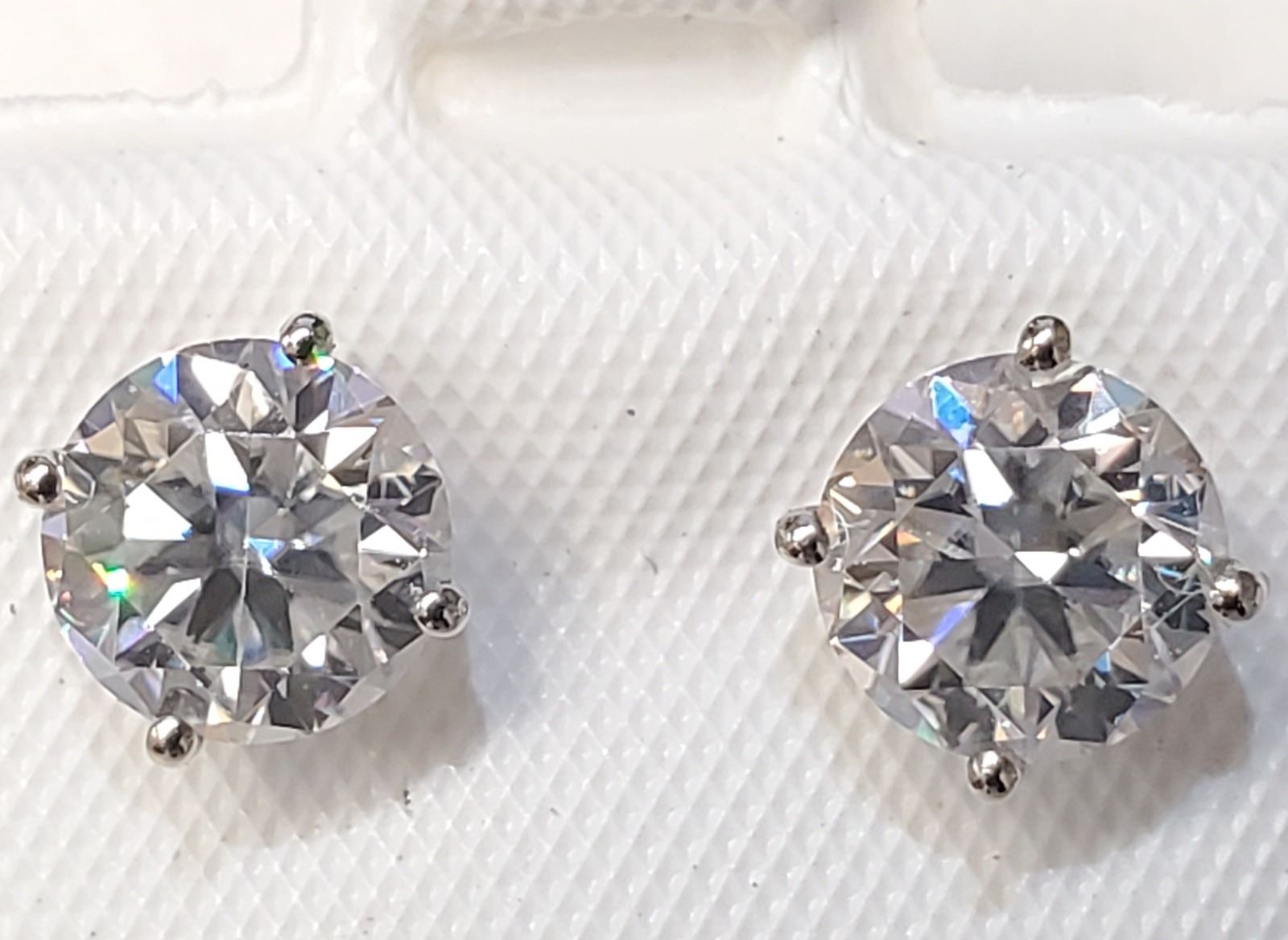 14K WHITE GOLD MOISSANITE (1.5CT) STUD EARRINGS (~WEIGHT 1.02G), MADE IN CANADA, APPRAISED RETAIL $1365. (EARRINGS ARE SLIGHTLY DIFFERENT SHADES, ONE IS MORE YELLOW THAN THE OTHER.)