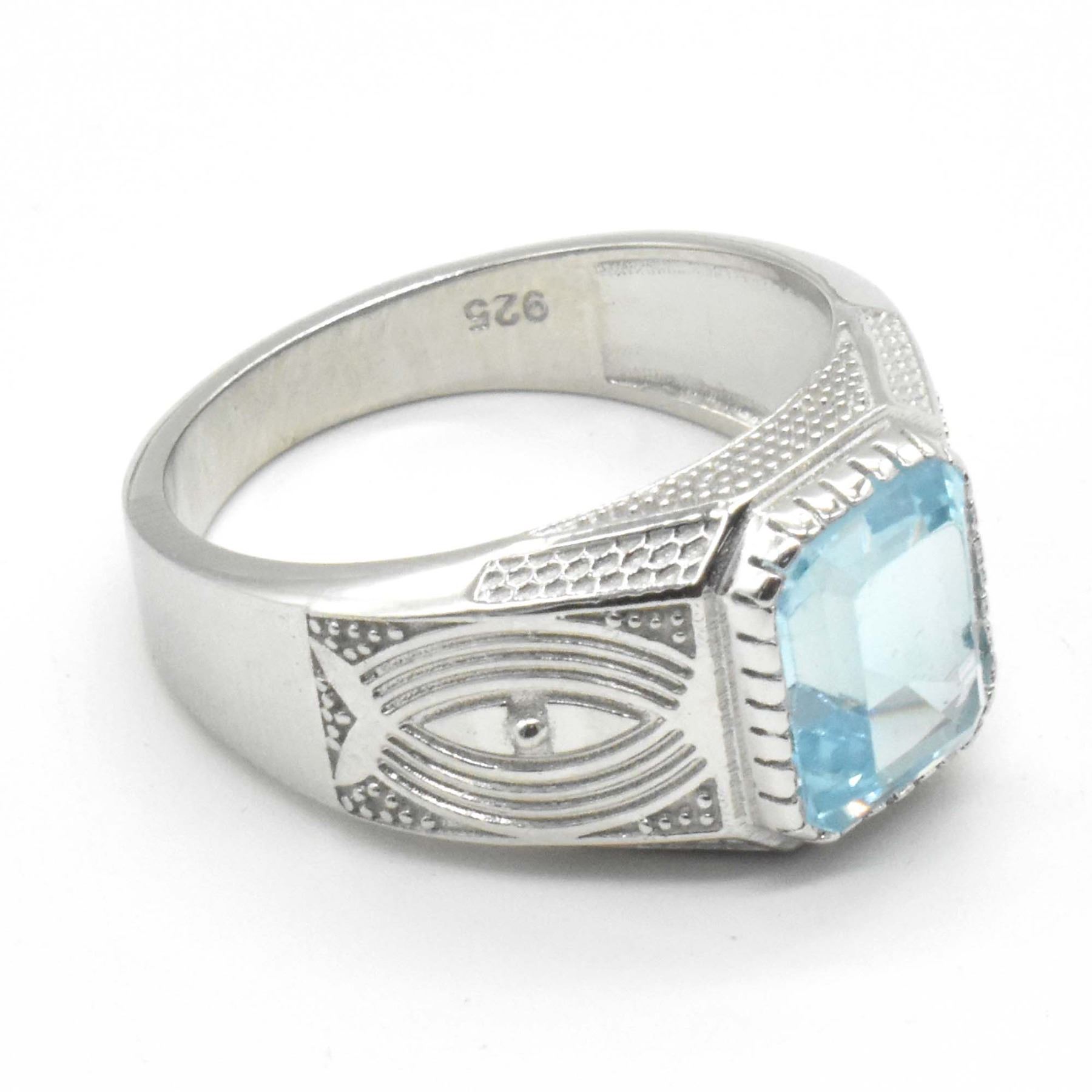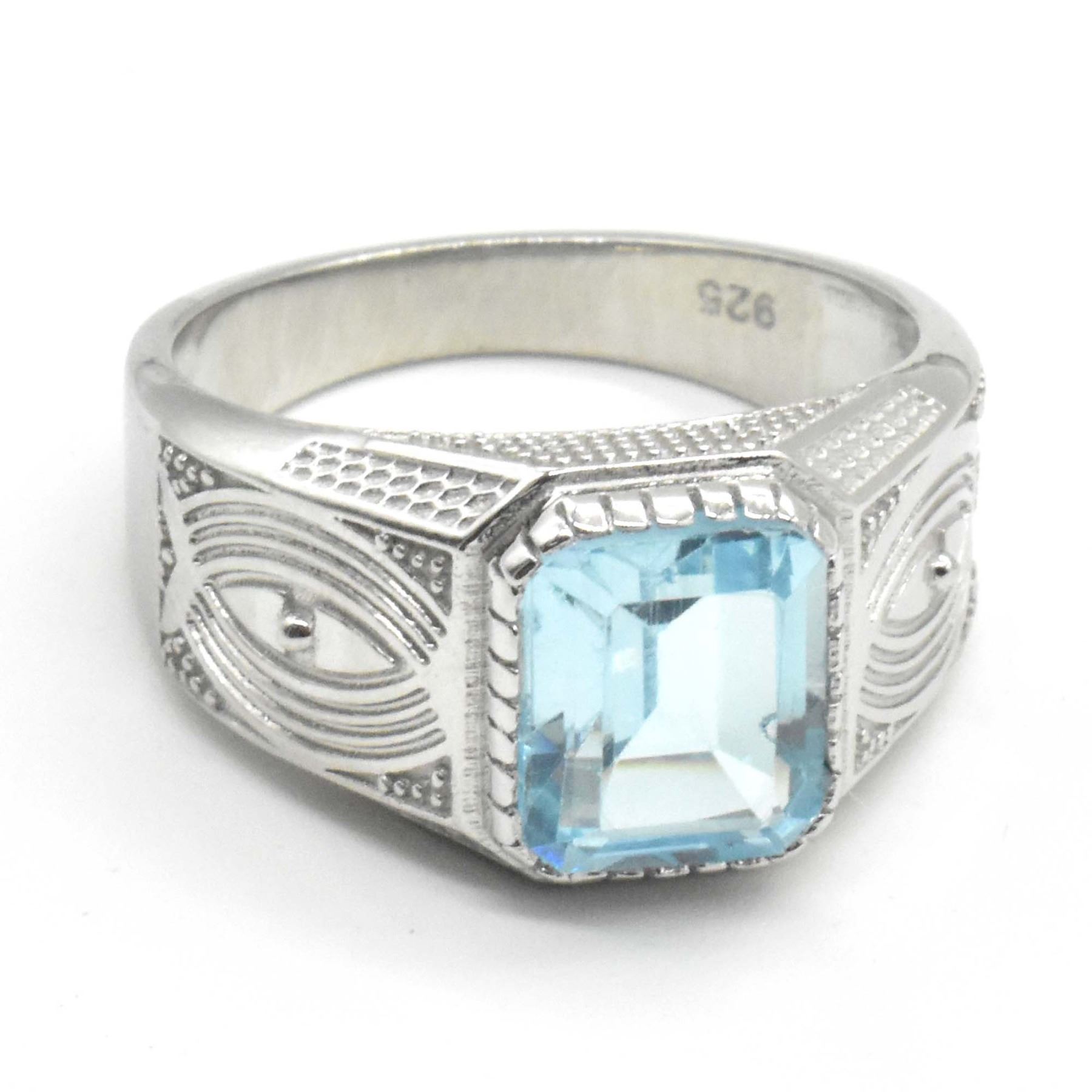 SILVER BLUE TOPAZ(3.9CT) RHODIUM PLATED MENS RING RING (~WEIGHT 6.85G) (ESTIMATED SELLING PRICE FROM $54 TO $108)