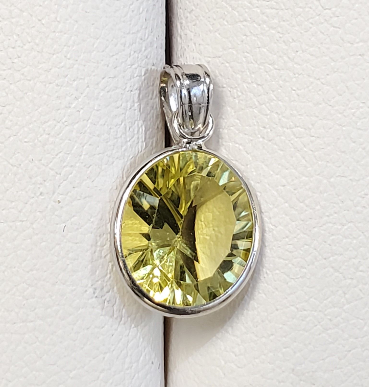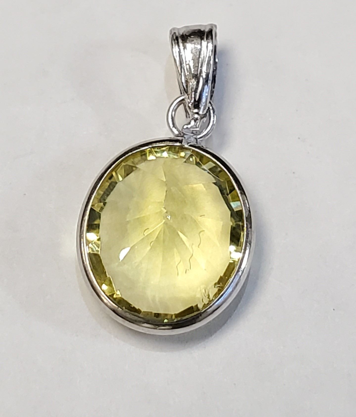 14K WHITE GOLD LEMON QUARTZ(3.8CT) PENDANT, MADE IN CANADA, SUGGESTED RETAIL VALUE $800 )