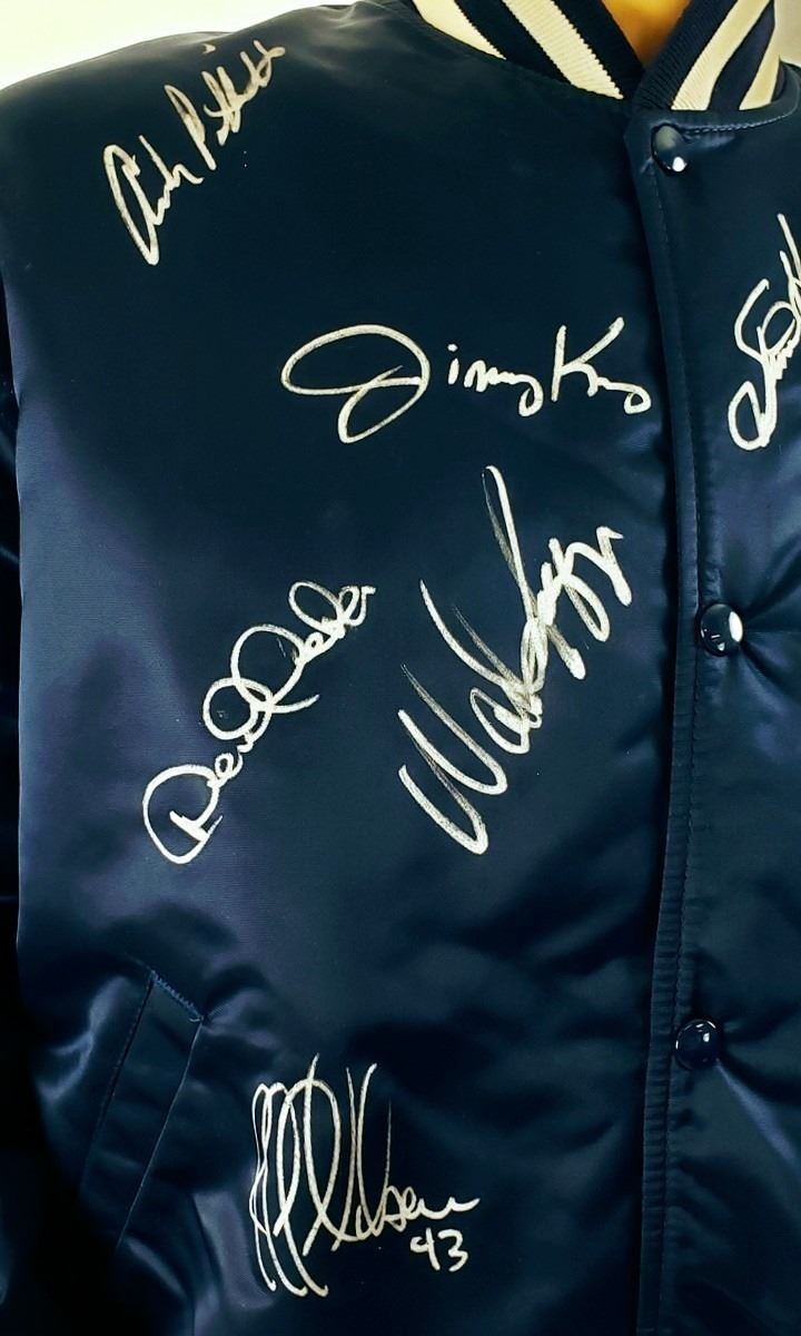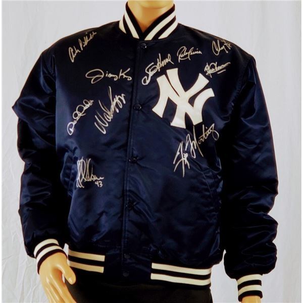 JSA Certified 1996 New York Yankees Autographed Jacket. (10) Signatures which Include 2 HOF's - Derick Jeter & Wade Boggs. Also Includes Andy Pettitte, Jeff Nelson, Andy Fox & Tino Martinez + 4 others. This is the real deal. CERTIFICATE NUMBER: BB44466