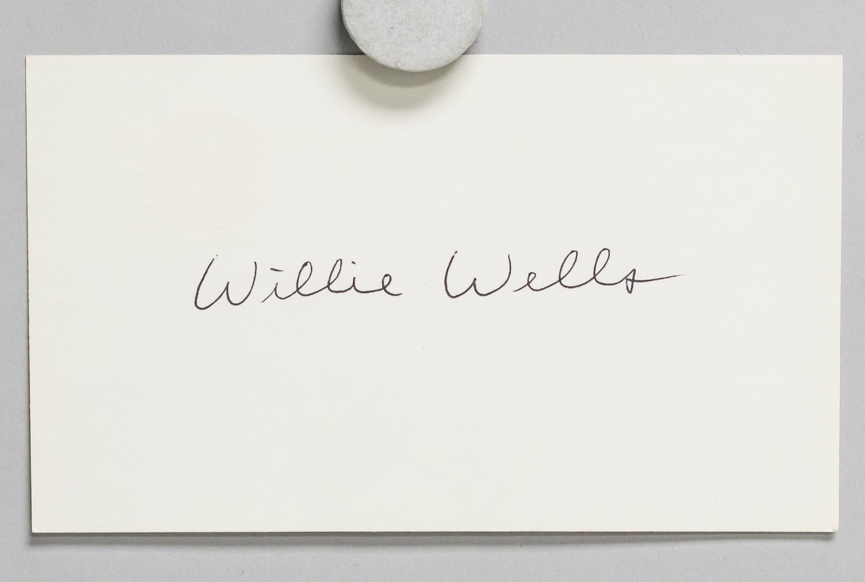 Autugraphed postcard. Signed Willie Wells. Accompanied with JSA letter of authenticiy. 8.5 x 14 cm. Photograph not included