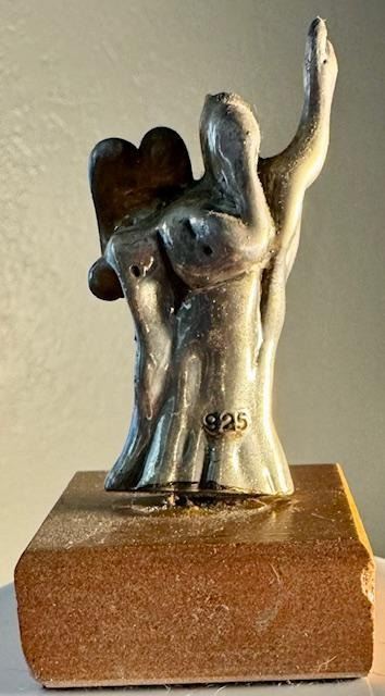 Vintage sterling silver sculpture by Ben Zion, Israel representing 'The Fiddler'. Size 3 1/2"x 2"x 2" and IS mounted on a stone base with Ben Zion label.Item is marked Sterling or 925 on the backside. Collectible Judaica, Home Decor And Silverware.