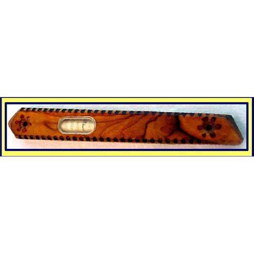 Old olive wood Mezzuzah case, dating from the mid 20th century. Contains a kosher klaf.<BR>Measures 6 inches long.<BR>Classic simple design with darkened stripes engraved on the sides and flowers around the nail holes.<BR>Condition is very good. There is a small crack in the wood at the back, quite hidden, that in no way compromises / detracts from the Mezzuzah.