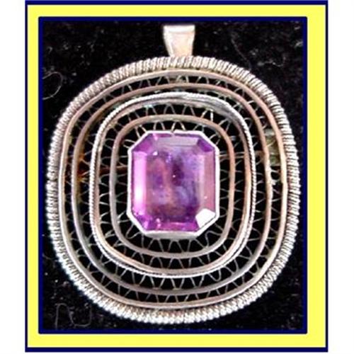 <tr><td>Title:JUDAICA SILVER FILIGREE & AMETHYST PIN PENDANT</td></tr>
