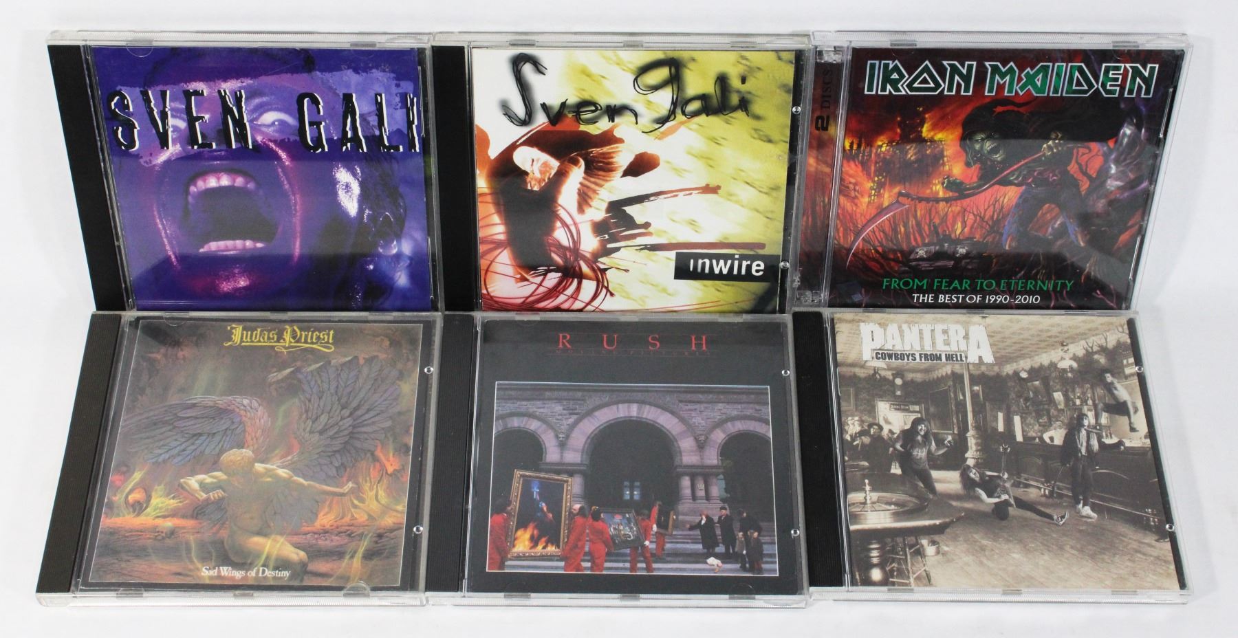 HEAVY METAL CDS: JUDAS PRIEST - Sad Wings Of Destiny / Rush - Moving Pictures / Pantera - Cowboys From Hell / Iron Maiden - From Fear To Eternity (double CD set) and 2 CD's of Sven Gali.