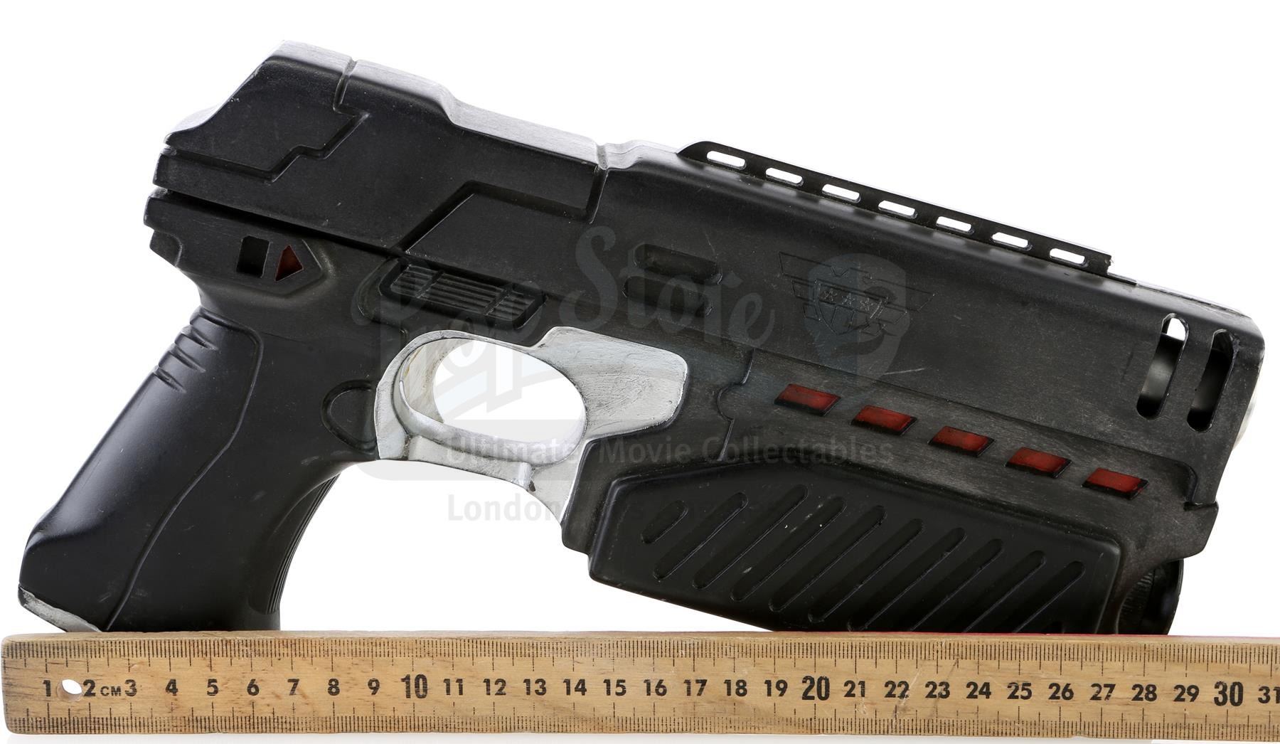 A Judge Lawgiver from Danny Cannon's sci-fi action film Judge Dredd. Judge Dredd (Sylvester Stallone) and his fellow Judges patrolled Mega-City One with their personalised, DNA-activated Lawgiver sidearms.