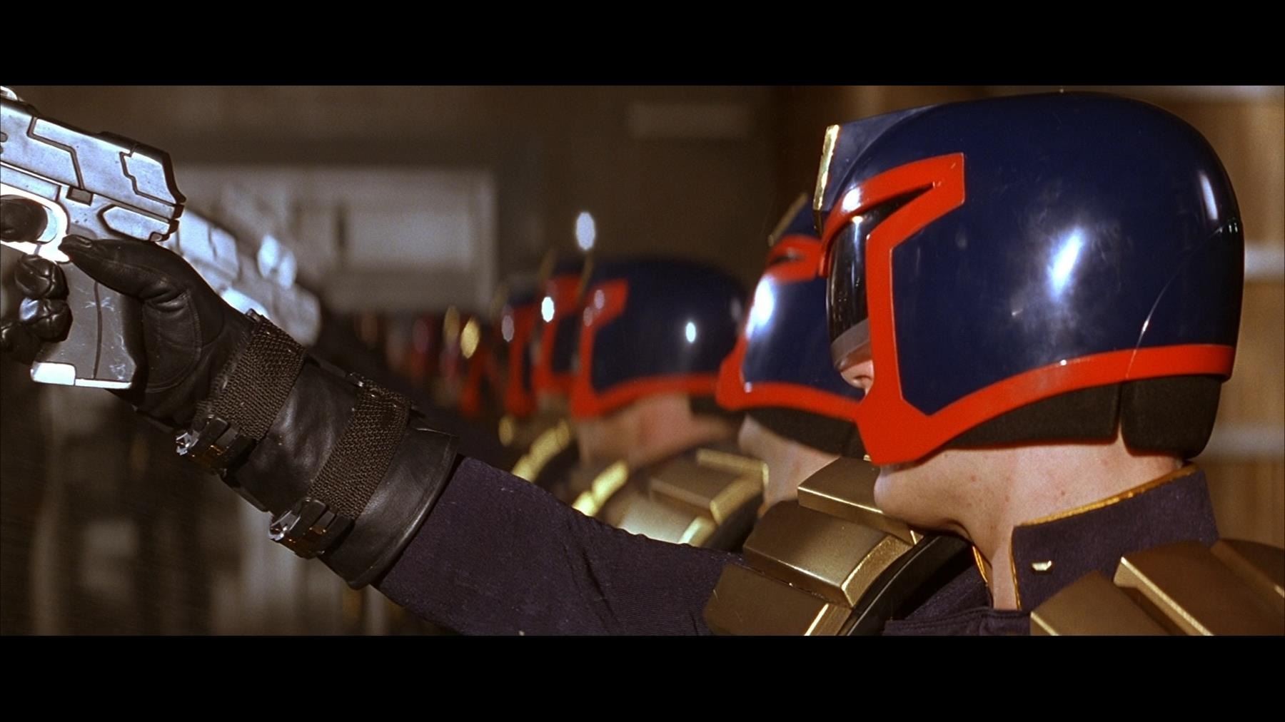 A stunt Lawgiver Mk. II pistol from Danny Cannon's sci-fi action film Judge Dredd. Judges used their Lawgivers on the mean streets of Mega-City One.