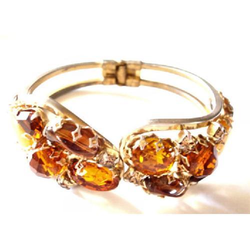 5237 - For sale I am offering a gorgeous Juliana Dark and Light Amber Color Rhinestone Clamper Bracelet.