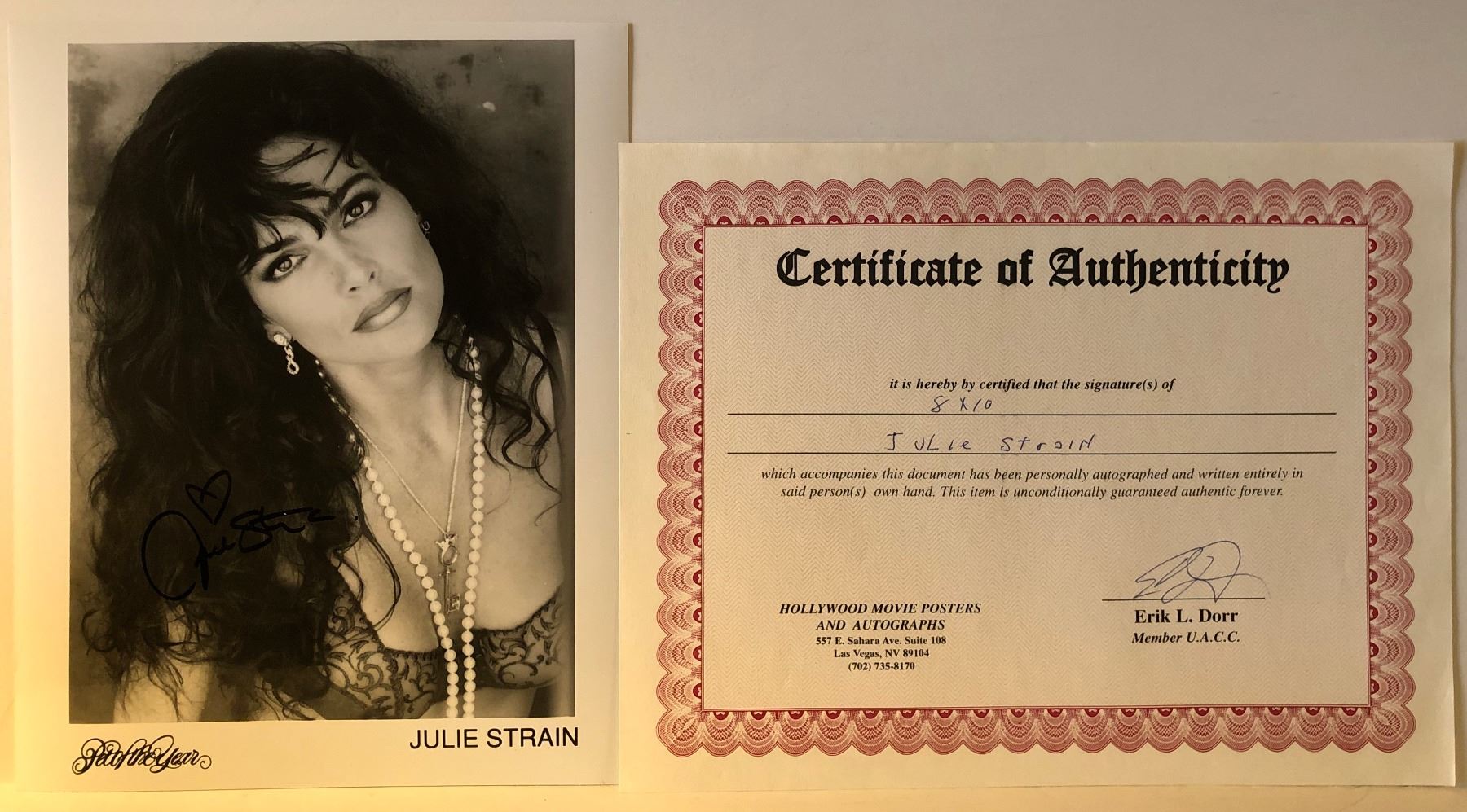 JULIE STRAIN SIGNED 8X10 PHOTO 'BEVERLY HILLS COP 3, NAKED GUN, PENTHOUSE MODEL' COA