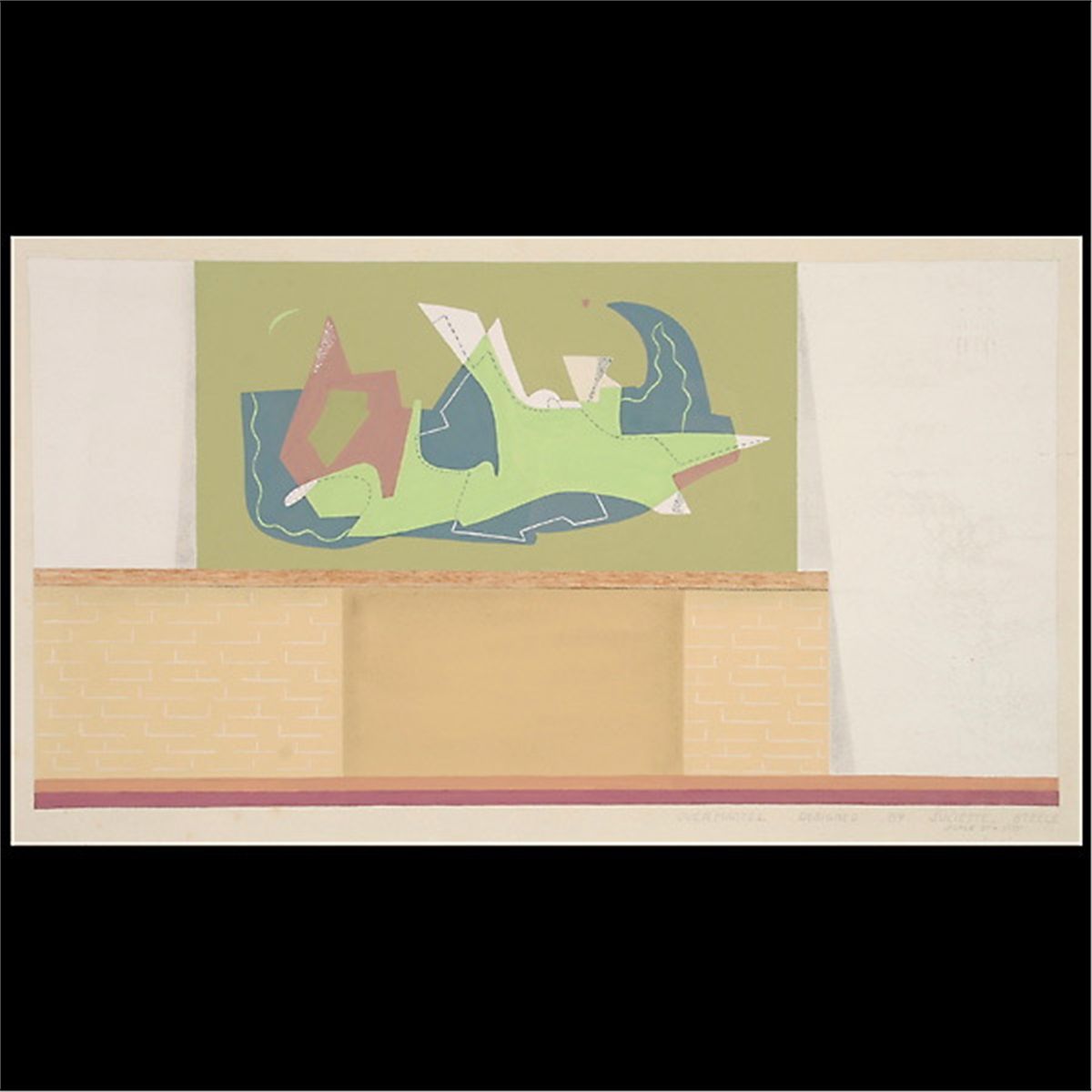 JULIETTE STEELE (American 1909-1980) Over Mantel Design Gouache on paper Sight: 9.50 x 16.50 inches/ 24.1 x 41.9 centimeters Signed lower right "By Juliette Steele" Frame: 19 x 25.50 inches/ 48.2 x 64.8 centimeters In very good condition. Framed, matted, and glazed. Not examined out of frame.