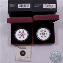 RCM Lot: 2x 2009 $20 Crystal Snowflake Fine Silver Coins. You will receive the 2009 Blue Crystal Snowflake and the 2009 Pink Crystal Snowflake. These