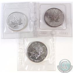 RCM Issue: 1988, 1989 & 1990 Canada 1oz .9999 Fine Silver Maple Leafs in Original RCM Plastic (TAX E