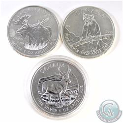 RCM Issue: 2012 Canada War of 1812 3/4oz, 2013 25th Anniversary 1oz & 2016 Peregrine Falcon 1oz .9999 Fine Silver Maple Leaves (TAX Exempt). Coi...