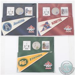 RCM Lot: 3x 2012 Canada CFL 25-cent Coin and Stamp Sets. You will receive Toronto Argonauts, Montreal Alouettes & Edmonton Eskimos. 3pcs
