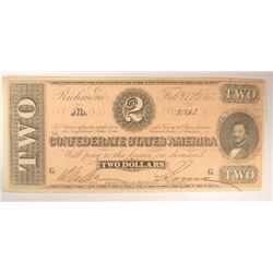 1864 $2 CONFEDERATE STATES OF AMERICA NOTE