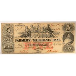 1854 $5 FARMERS & MERCHANTS BANK NOTE