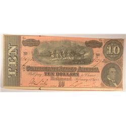 1864 $10 CONFEDERATE STATES OF AMERICA NOTE