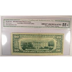1974 $20 FEDERAL RESERVE NOTE CGA 55 MINT ERROR
