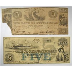 1849 $5 BANK OF PITTSBURGH NOTE & 1853 $5 COCHITUTE BANK NOTE