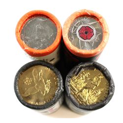 RCM Issue: 4x Canada Special Wrapped Original Rolls: 2004 25-cent Poppy, 2005 25-cent Year of the Veteran, 2005 Terry Fox Loon & 2006 Lucky Loon...