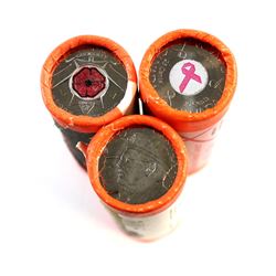 RCM Issue: 3x Canada 25-cent Special Wrapped Rolls of 40pcs: 2004 Poppy, 2005 Year of the Veteran and 2006 Pink Ribbon. 3pcs