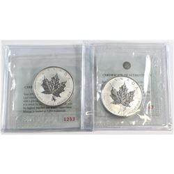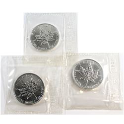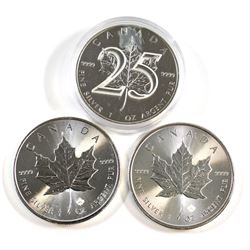 RCM Issue: 2013 25th Anniversary, 2015 & 2016 Canada 1oz .9999 Fine Silver Maple Leafs. Coins are to