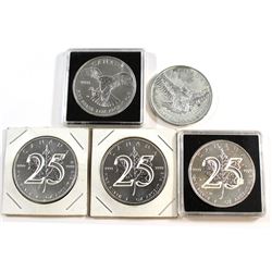 RCM Issue: 5x 2013-2015 Canada $5 Commemorative Silver Maple Leafs: 3x 2013 25th Anniversary, 2014 P