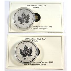 RCM Issue: Pair of 2005 Canada VE Days & VJ Day Privy Mark Silver Maple Leafs. Coins come encapsulat