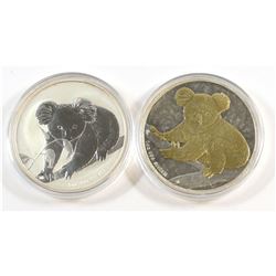 Perth Mint: 2x Australia $1 Koala 1oz. .999 Fine Silver Coins - 2009 Gold Plated & 2010 Silver (Tax