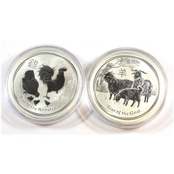Perth Mint: 2015 Year of the Goat & 2017 Year of the Rooster 1oz .999 Fine Silver Coins (Tax Exempt)